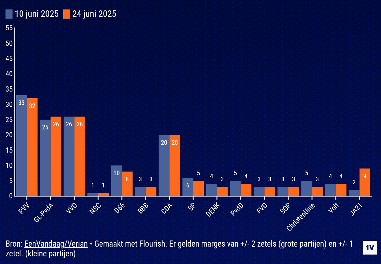 Op dit moment worden ook 29 zetels bezet door partijen die elk afzonderlijk minder dan 5 zetels peilen.